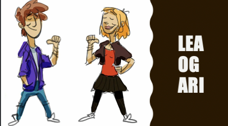 Vit introduseraðu figurarnar Ari og Lea og bygdu eina søgu rundan um tey, og brúktu síðani hesar søgurnar í evnunum vit undirvístu í. Tit síggja eitt dømi niðanfyri: